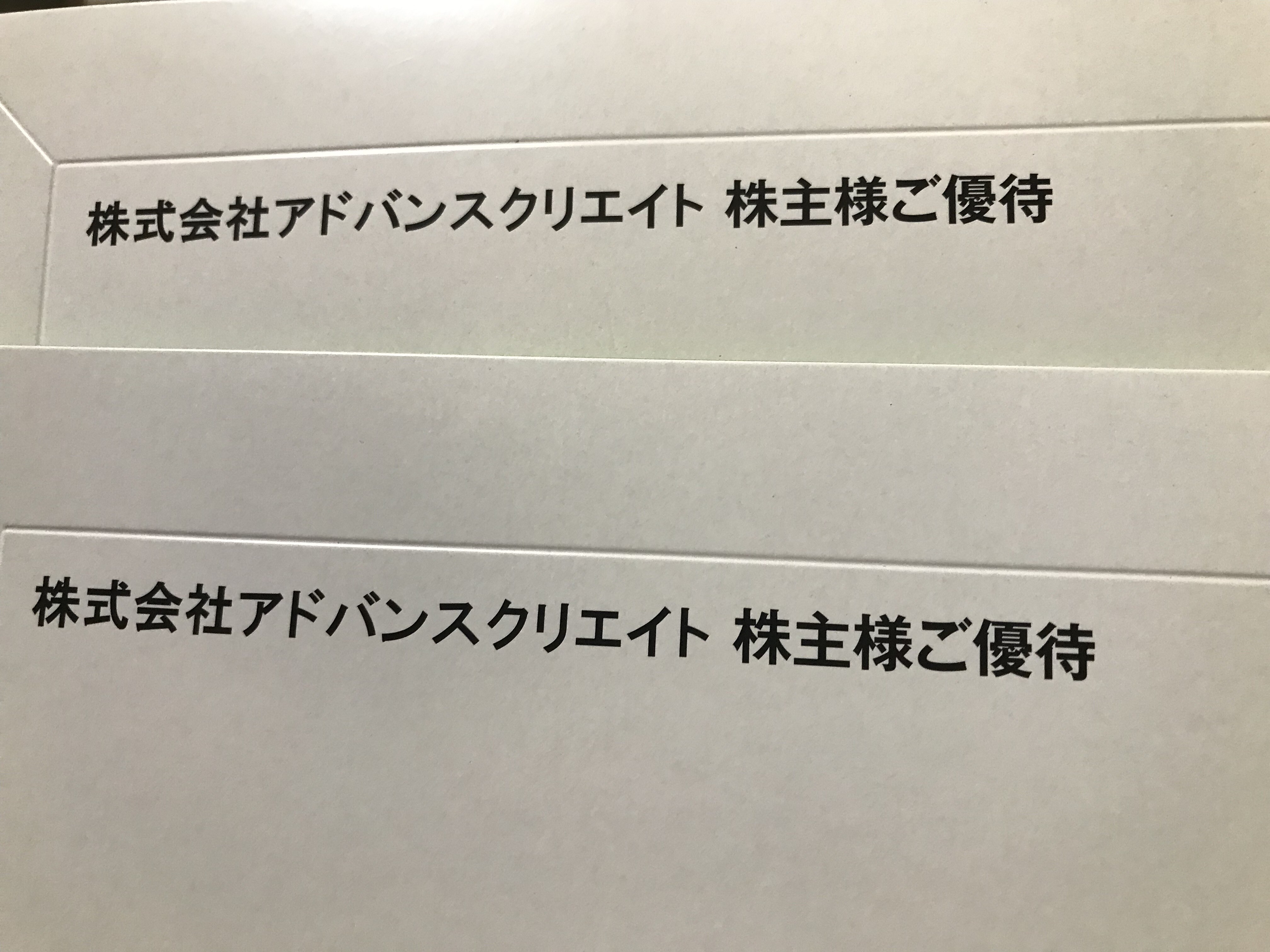 アドバンスクリエイトから2,500円相当のカタログギフト等が2名義です