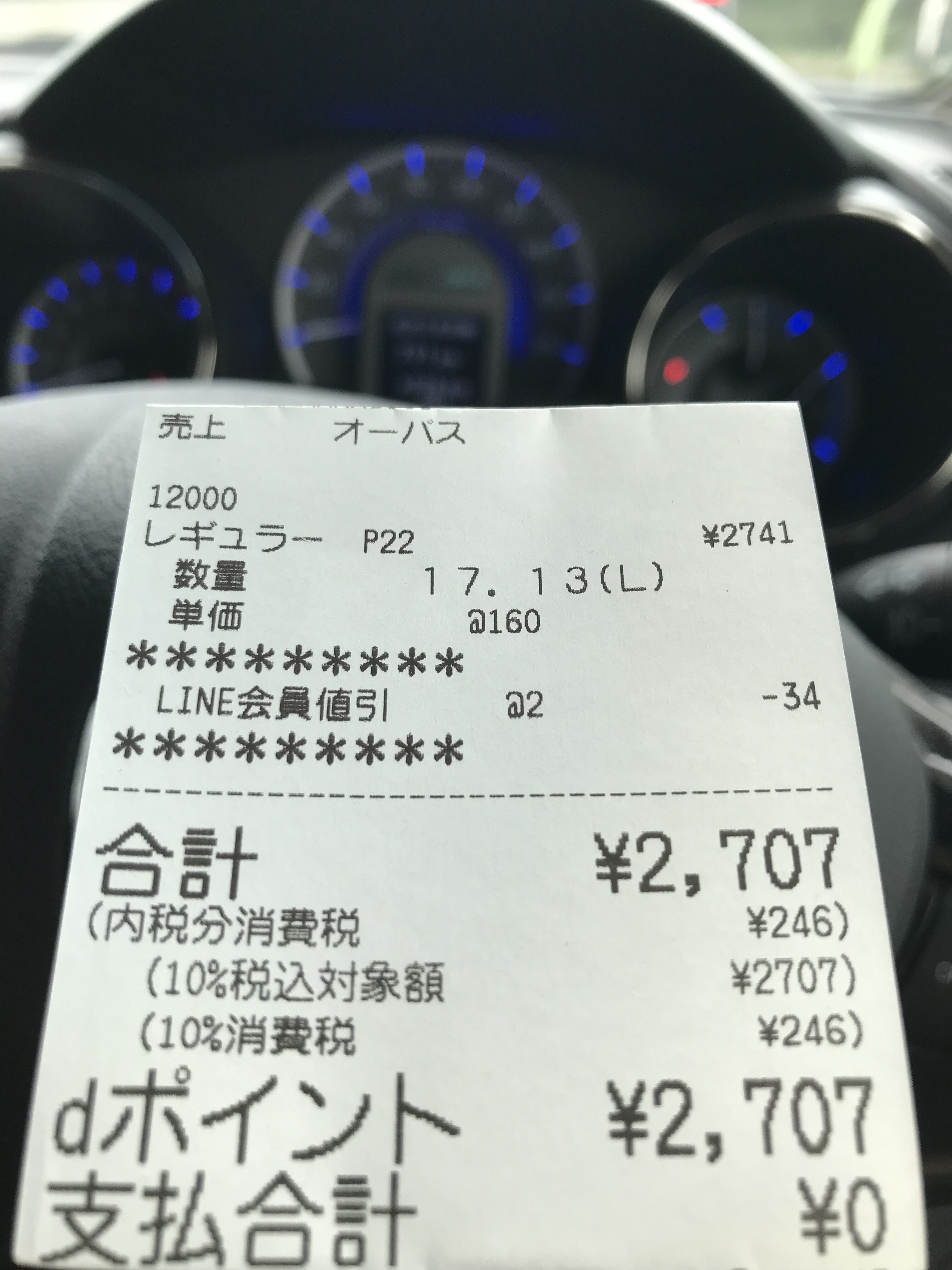 支払いは2707dポイントでした