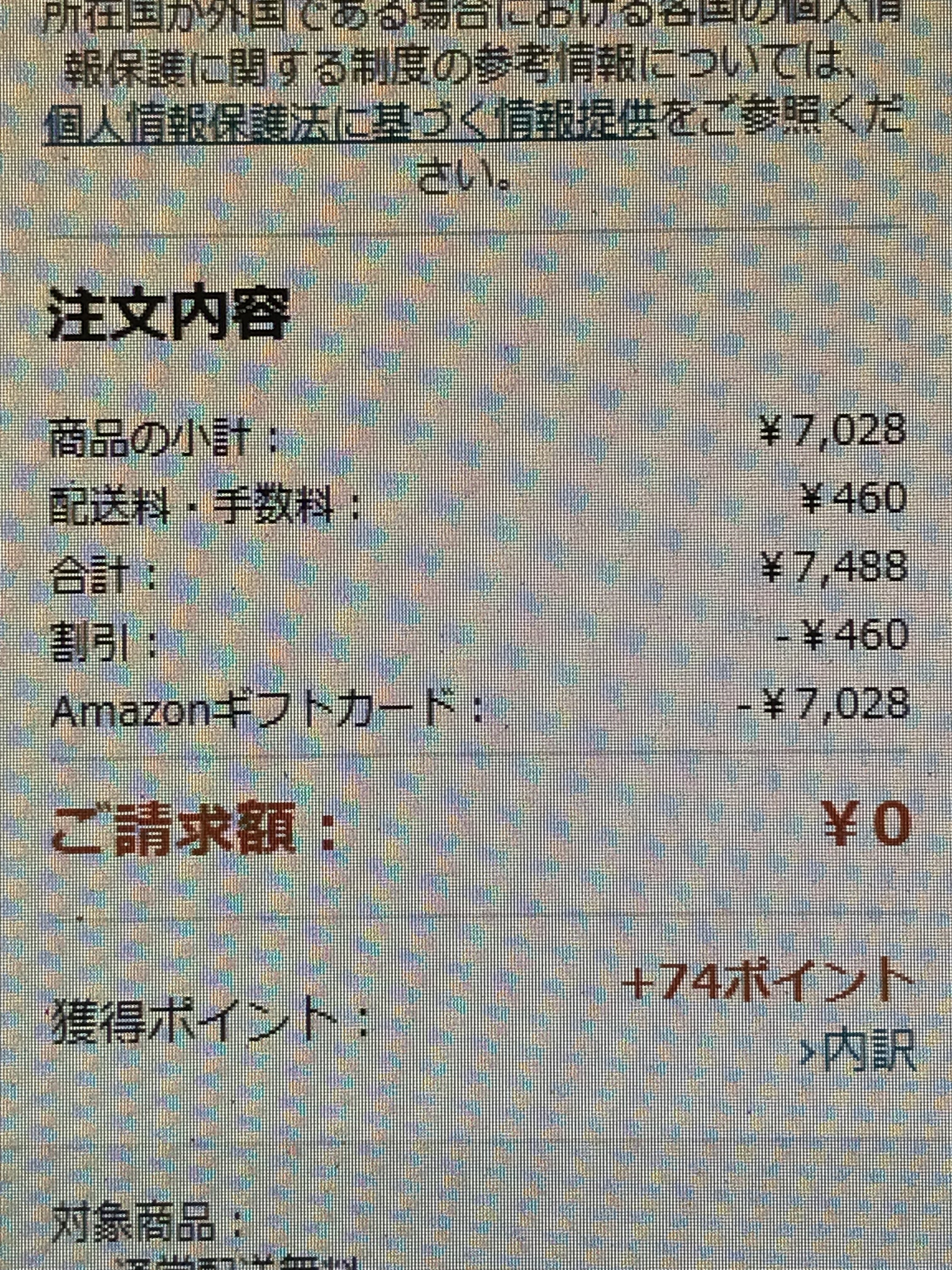 支払いはAmazonギフト券¥7,028です