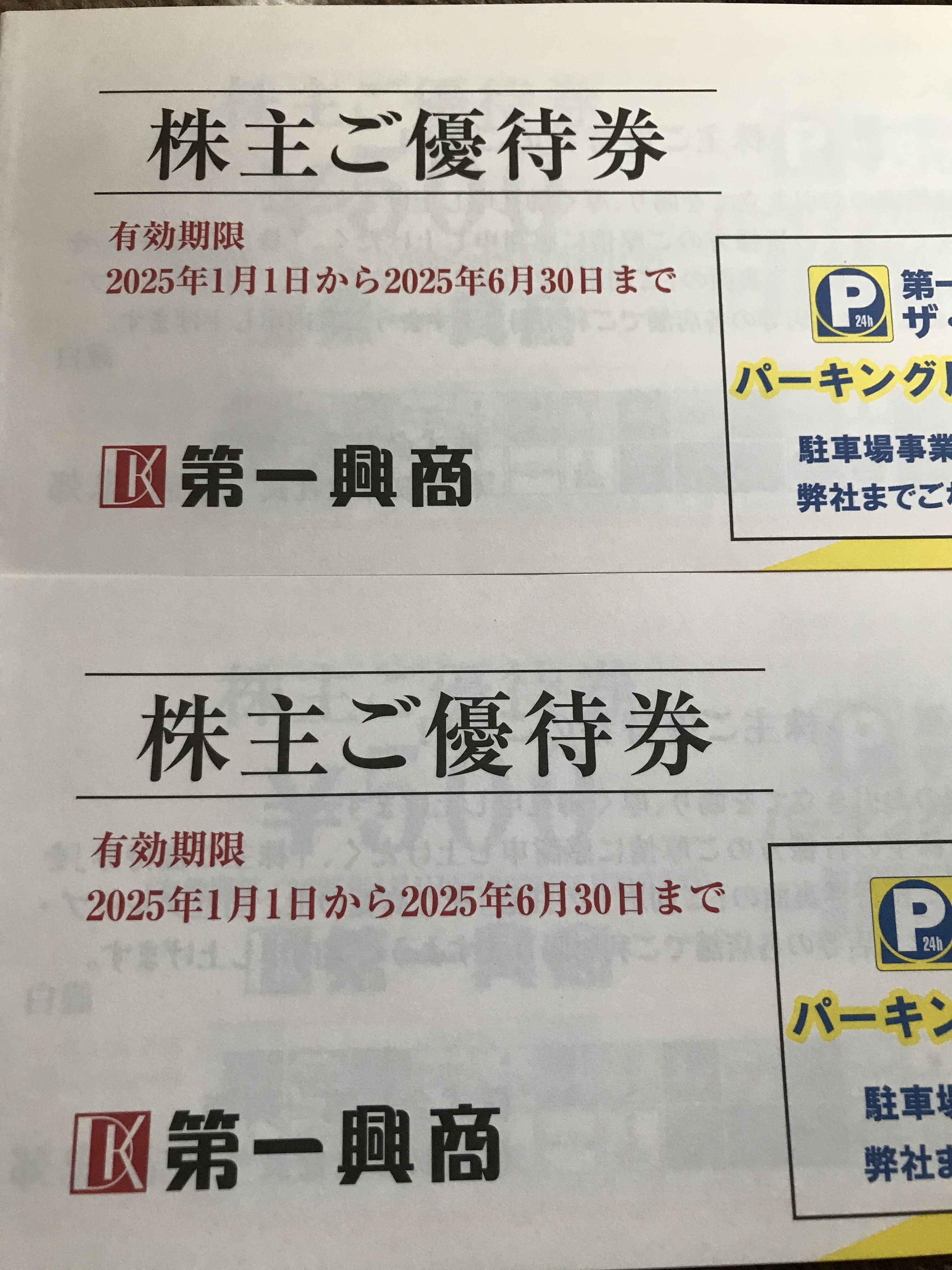 第一興商からも二名義で合計10,000円分の優待券です