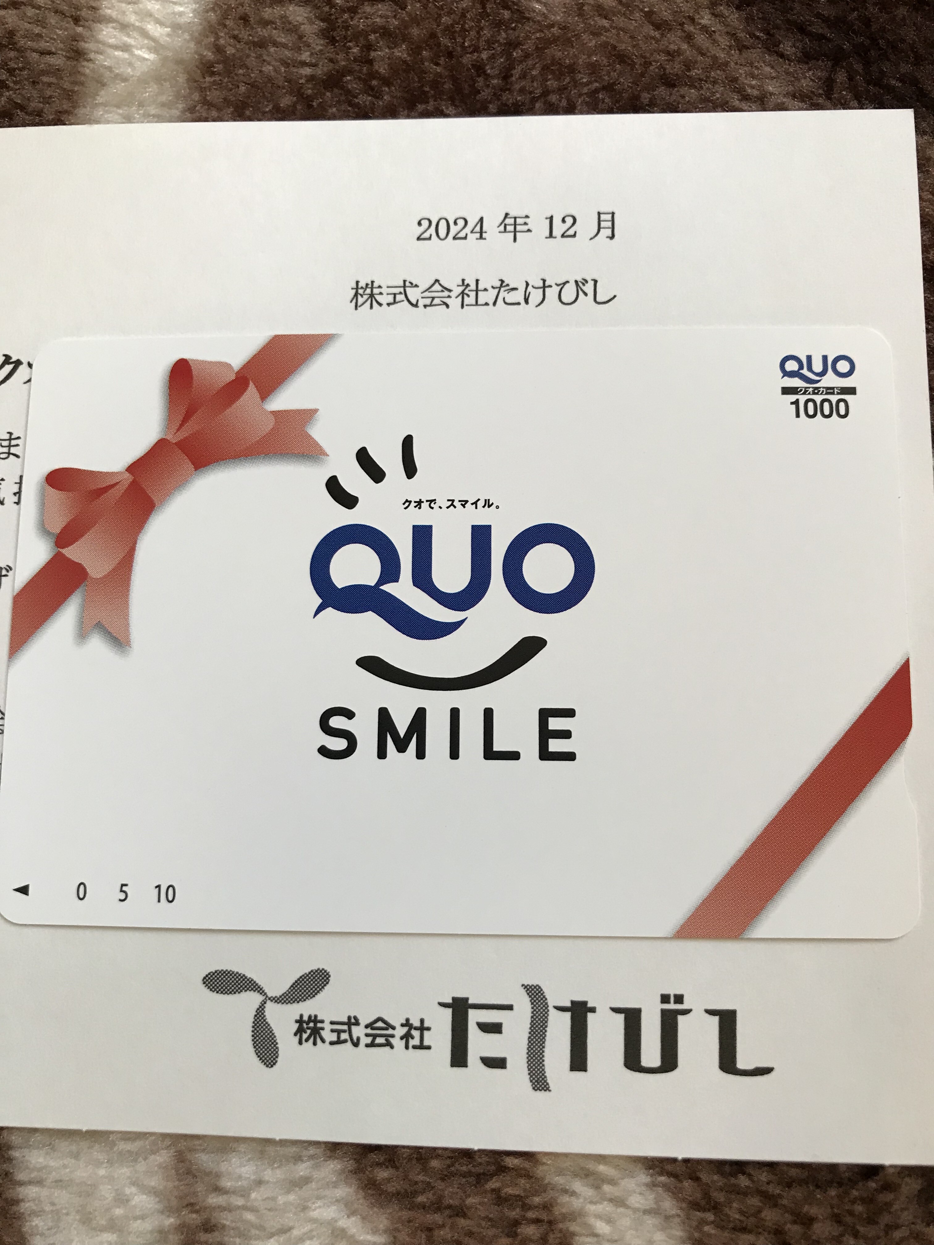 たけびしからは1000円のクオカード
