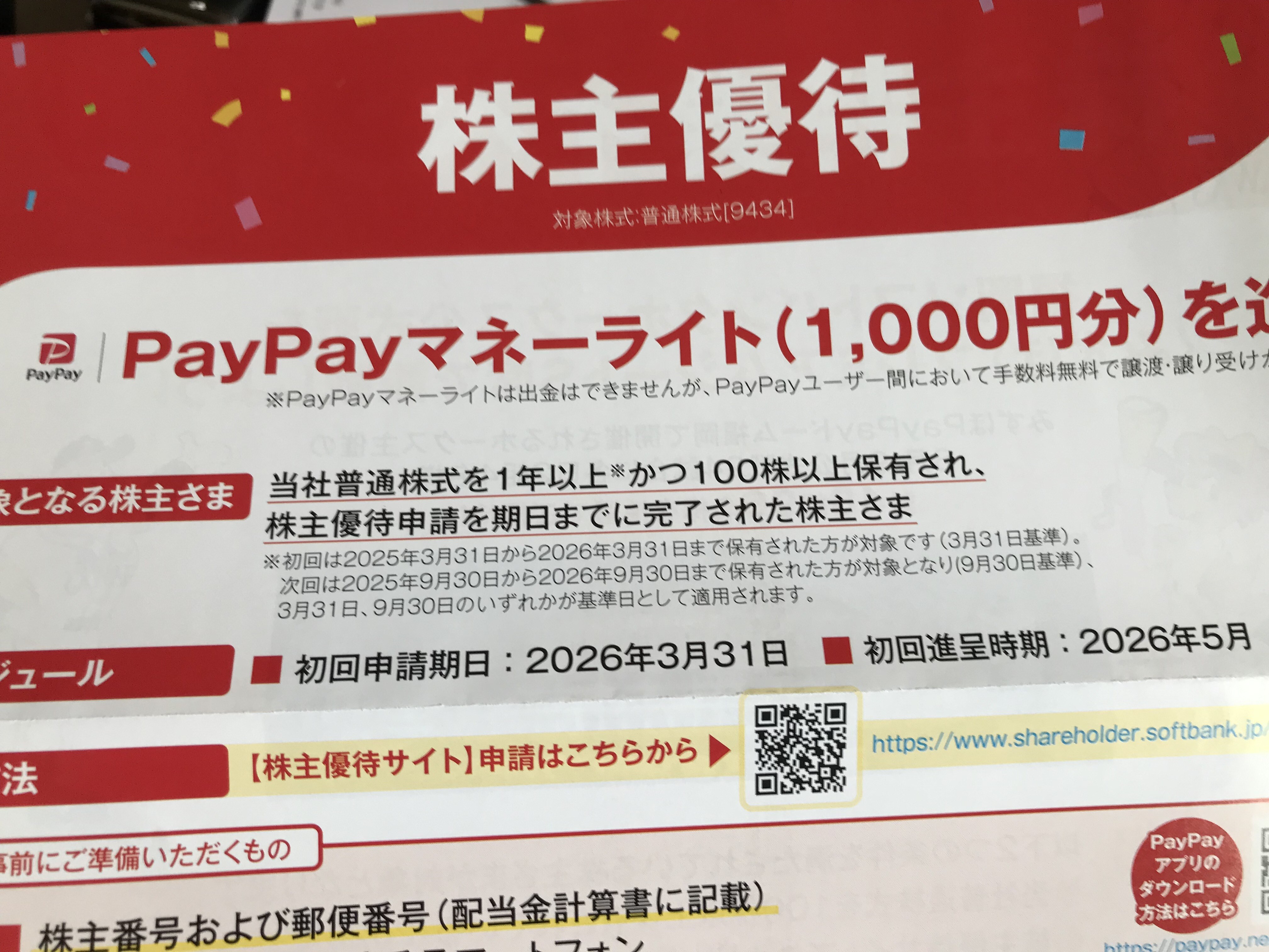 ソフトバンクからも二名義で合計2000円分のペイペイ