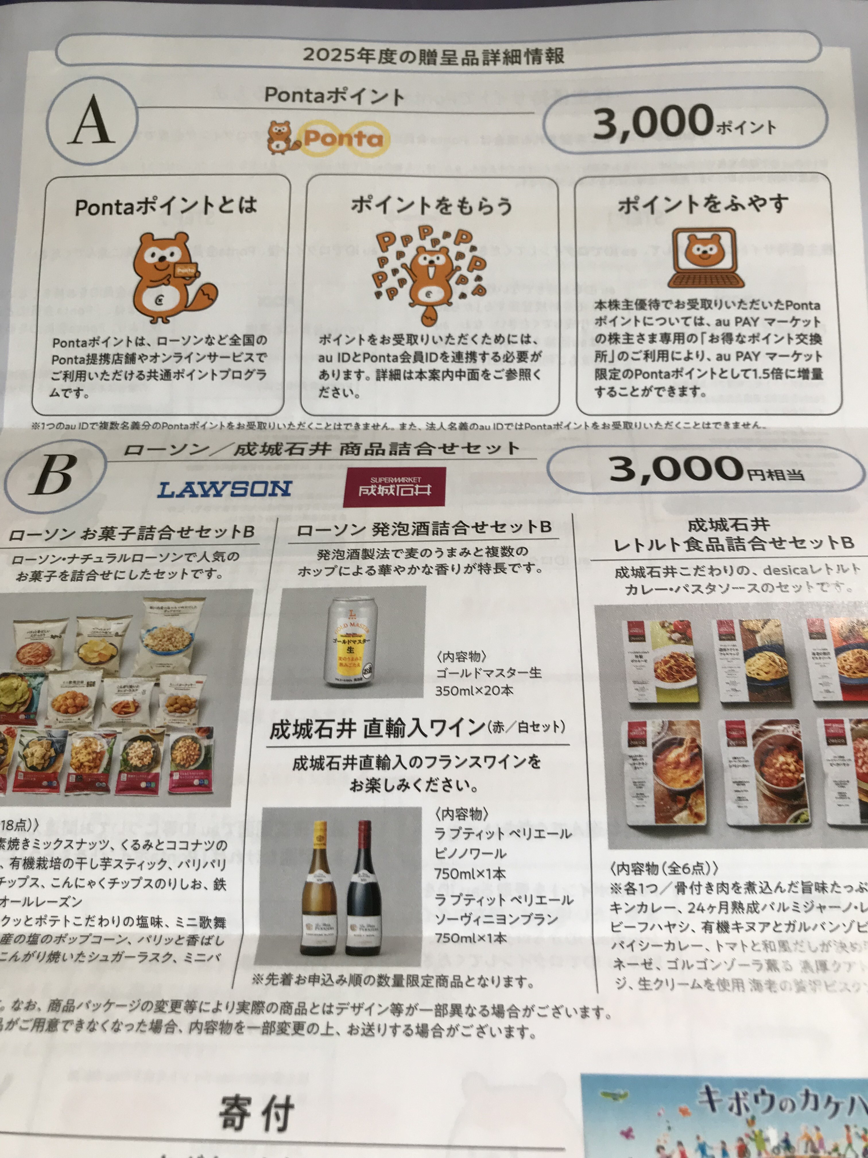 KDDIからは二名義合計6000円相当の優待です