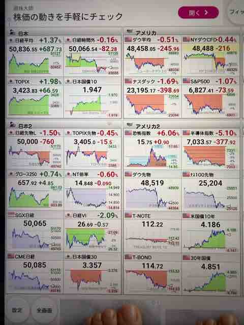日経平均株価 50,836.55 +687.73 +1.37%